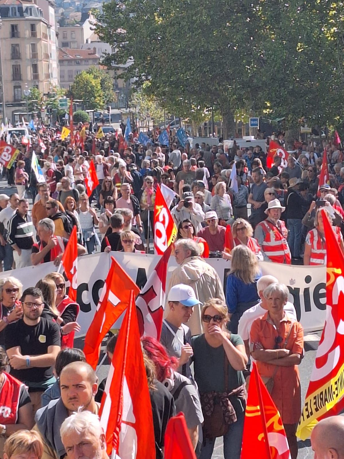 Alors, mesdames et messieurs, chers amis, chers camarades, le 10 septembre, une lame de fond s’est levée. Cette journée de grève massive aujourd’hui en Haute-Loire, comme partout en France, en est la continuité. Macron est isolé et plus faible que jamais. Nous ne devons rien lâcher, nous devons poursuivre. Notre cap est clair ! Nos tâches sont connues : réunir les salariés dans les entreprises, lister les revendications, décider des initiatives efficaces à prendre pour les faire aboutir et rejoindre toutes celles qui seront prises pour bloquer.