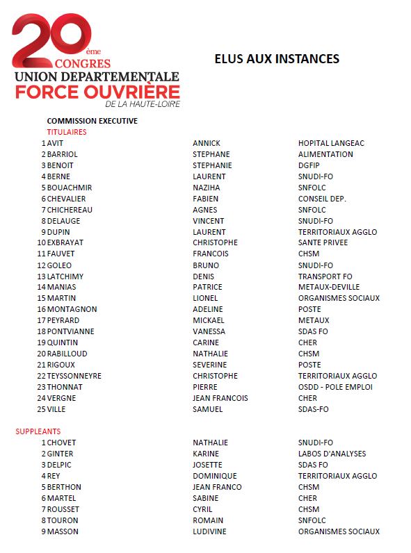 Lors du congrès de l’Union Départementale FO qui s’est réuni le 3 Octobre 2025, les 350 délégués des syndicats FORCE OUVRIERE du département ont élu leur Commission Exécutive.